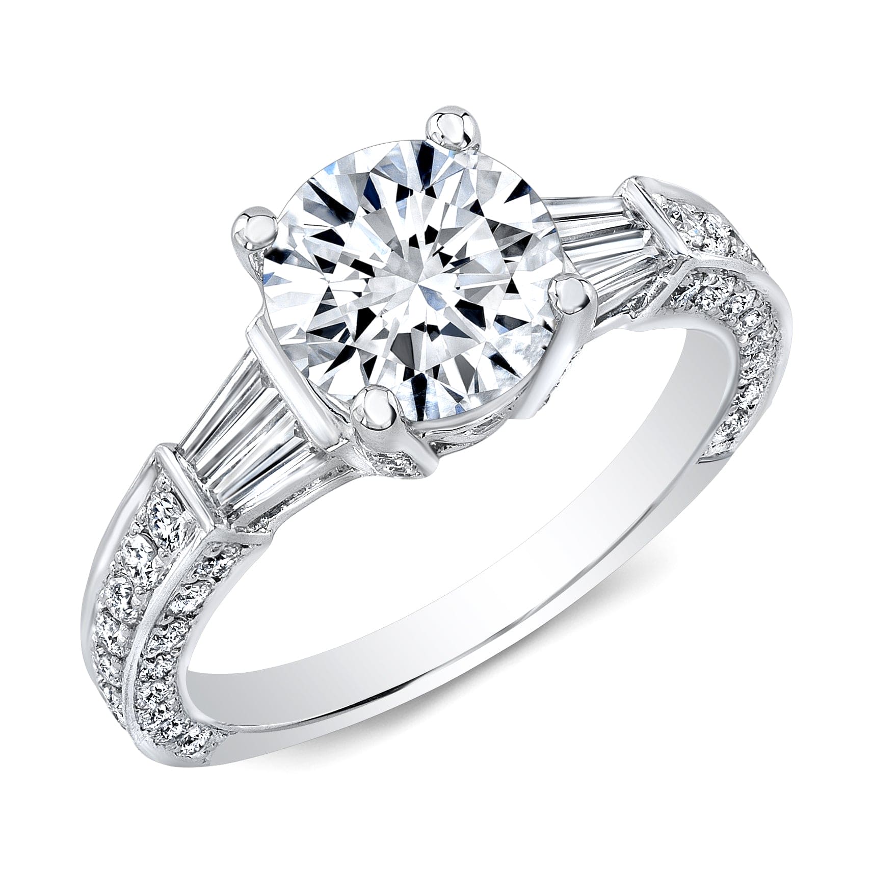 2 70 Ct Comely Round Cut W Baguette Diamond Ring J Color Vs2 Gia Cert Kingofjewelry Com